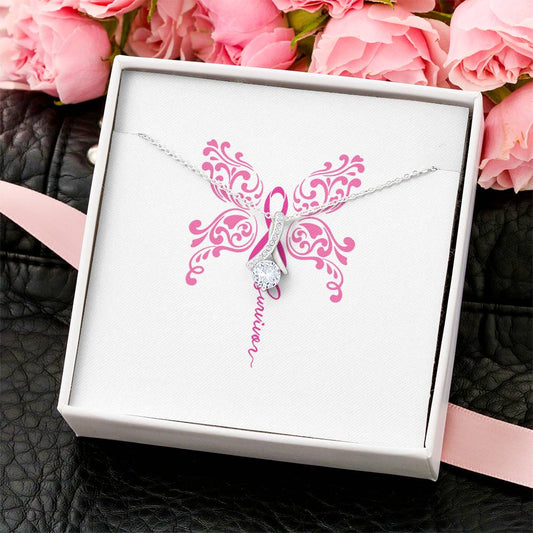 Celebrate Her And Life Pink Breast Cancer Survivor Ribbon Butterfly Cz Gift Necklace For Her Alluring Beauty Necklace