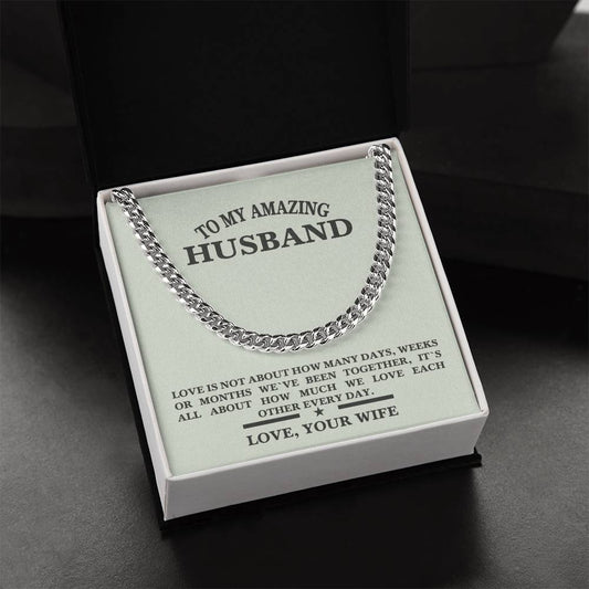 Stainless Steel Husband Birthday Husband Anniversary Cuban Link Chain Message Necklace For Husband Message Card Jewelr
