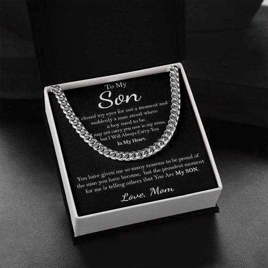 To My Son - Proud Of You Gift For Son From Mom Sentimental Gift For Son Cuban Link Chain
