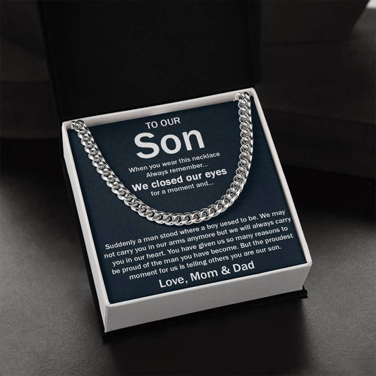 To Our Son Chain Necklace Gifts For Son Birthday Unique Gifts For Son From Mom Dad Sentimental Son Gifts Cuban Link Chain