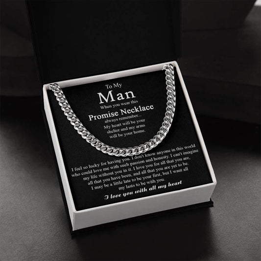 To My Man Necklace Gift For Boyfriend Husband Birthday Jewelry Gift Anniversary Gift Promise Necklace For Him Cuban Link Chain