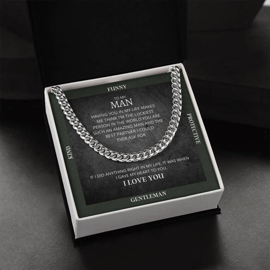 To My Man Cuban Chain Necklace For Your Valentine Cuban Link Chain