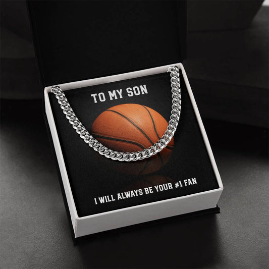 To My Son - Always Your Number 1 Fan - Basketball Cuban Link Chain