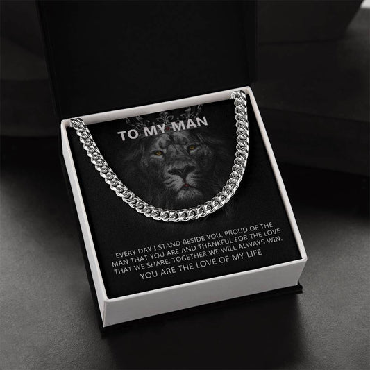 To-My-Man-Every-Day-I-Stand-Beside-You-Cuban-Link-Chain-Necklace-With-Message-Card-Gift-For-Husband-Or-Boyfriend-I-Lov Cuban Link Chain