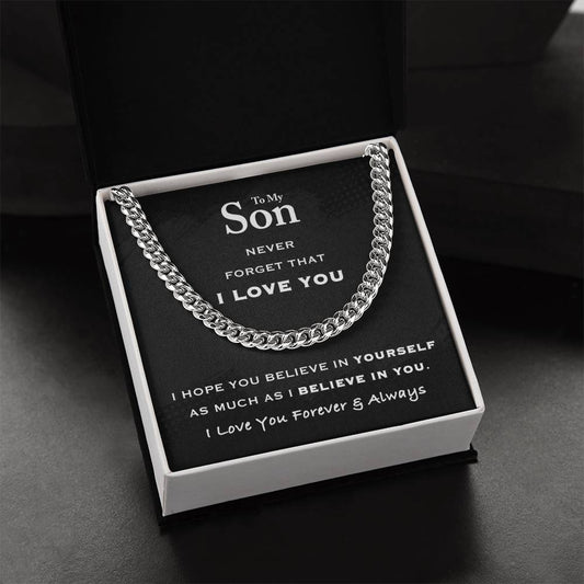 Never Forget I Love You Cuban Link Chain Necklace Gift For Son