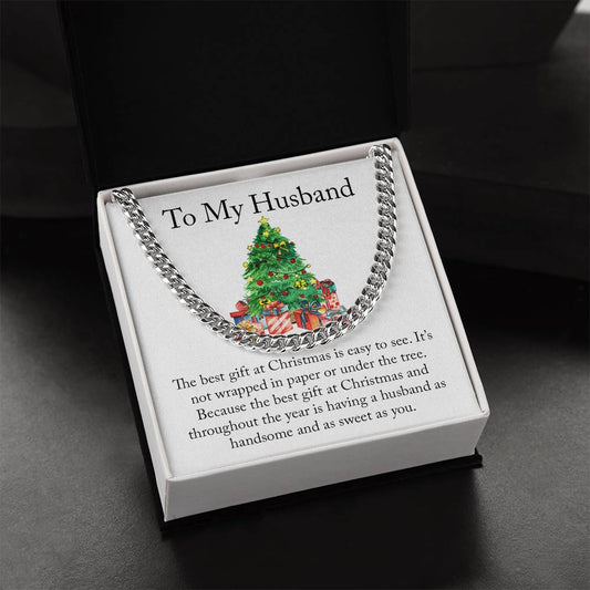 To My Husband - Merry Christmas - Chain Necklace + Mahogany Luxury Gift Box Cuban Link Chain