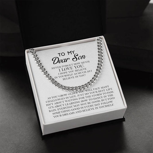 To My Dear Son - Never Forget How Much I Love You Chain Necklace For Him For Birthday Graduation Anniversary Cuban Link Chain