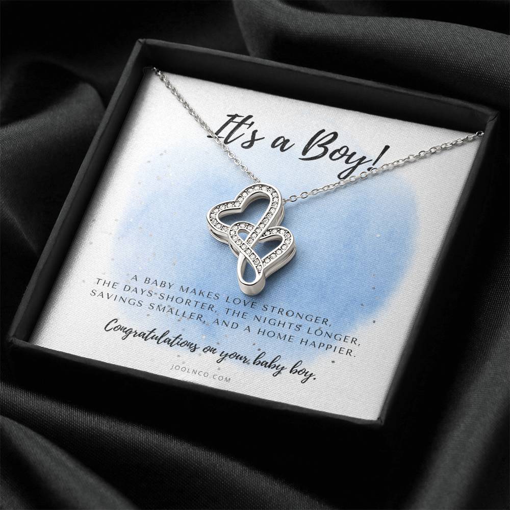 It's A Boy Necklace Gift For Mom Baby Boy Congratulations Baby Boy Shower Gift For Mom New Mom Necklace New Mom Gi 1 Double Hearts Necklace
