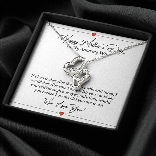 Perfect Wife And Mom Mother's Day Necklace - To My Amazing Wife Gifts - Amazing Wife Double Heart Necklace-Anniversary Double Hearts Necklace