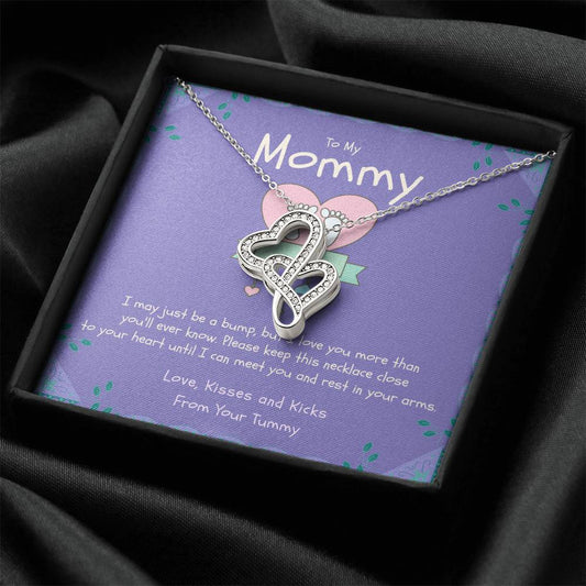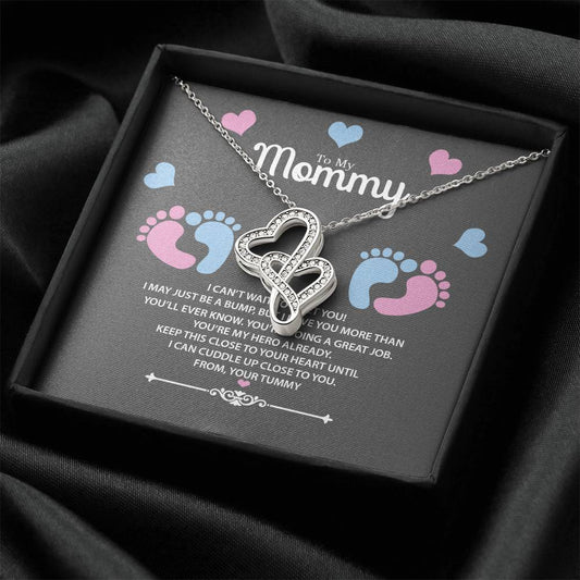 To My Mommy From Your Tummy Gift For Pregnant Wife Double Hearts Necklace
