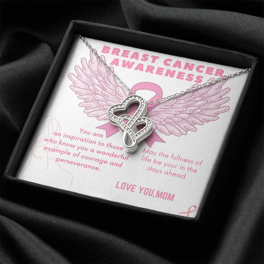 Breast Cancer Awareness -Love Mom Double Hearts Necklace