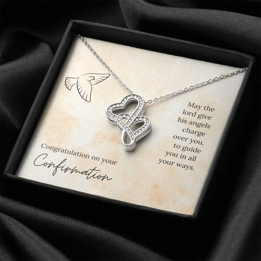 Congratulation On Your Confirmation - May The Lord Give His Angels Charge Over You To Guide You In All Your Ways - Nec Double Hearts Necklace