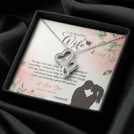 To My Gorgeous Wife And Mom Double Hearts Necklace