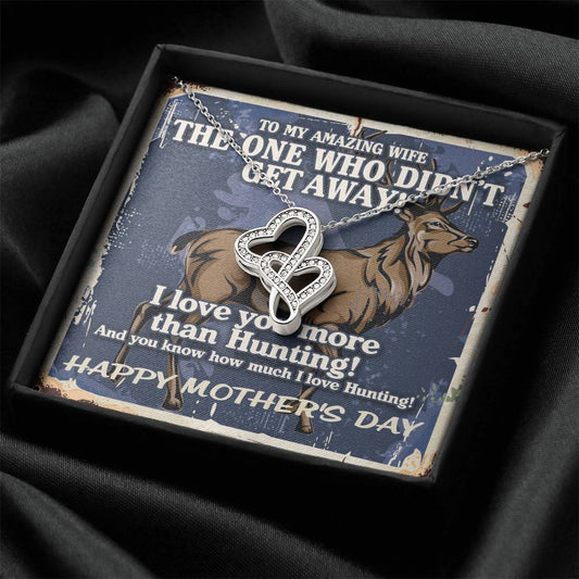 To My Amazing Wife - I Love You More Than Hunting - Mothers Day Necklace And Funny Hunting Gift Box I Love You More Th Double Hearts Necklace