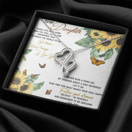 Dad To Daughter Double Heart Necklace Gift - Daughter Birthday Gift - Daughter Jewelry - Daughter Necklace Dad To Dau Double Hearts Necklace
