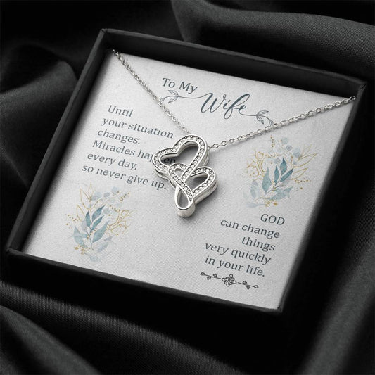 To My Wife - God Can Change Things Very Quickly In Your Life - Double Hearts Necklace