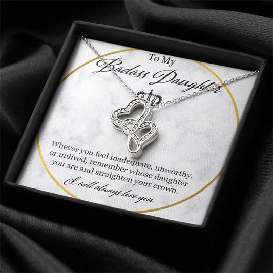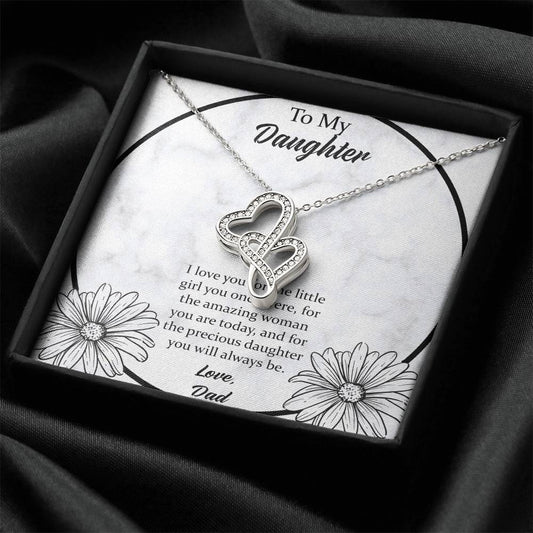 Daughter Gift - To My Daughter Necklace From Mom - To My Daughter Necklace From Dad - Gift For Daughter From Mom - Dau Double Hearts Necklace