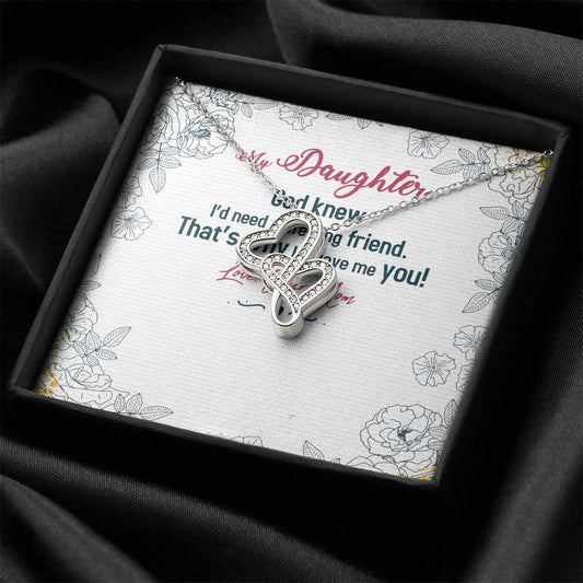 My Daughter - God Knew I'd Need A Life - Long Friend - Double Hearts Necklace