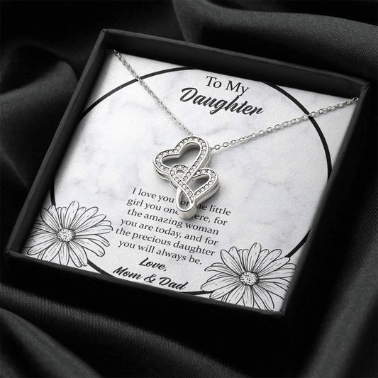 To My Daughter I Love You For The - Mom & Dad Double Hearts Necklace