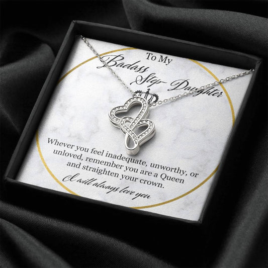 To My Badass Stepdaughter Double Hearts Necklace