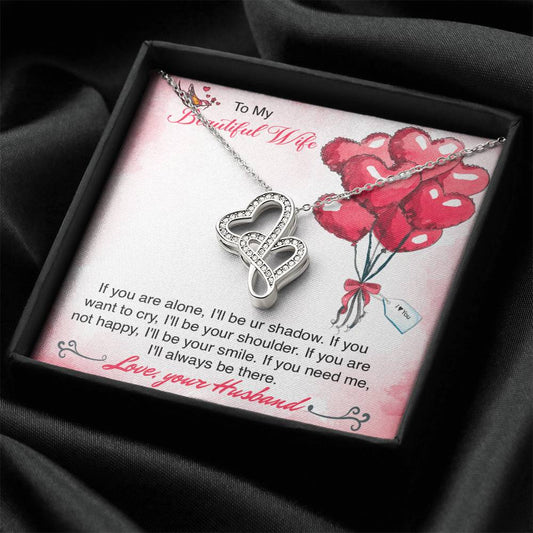 To My Lovely Wife - Forever Love Necklace - Love Your Husband - Lovely Wife -Romantic Wife Necklace - Anniversary Gift Double Hearts Necklace
