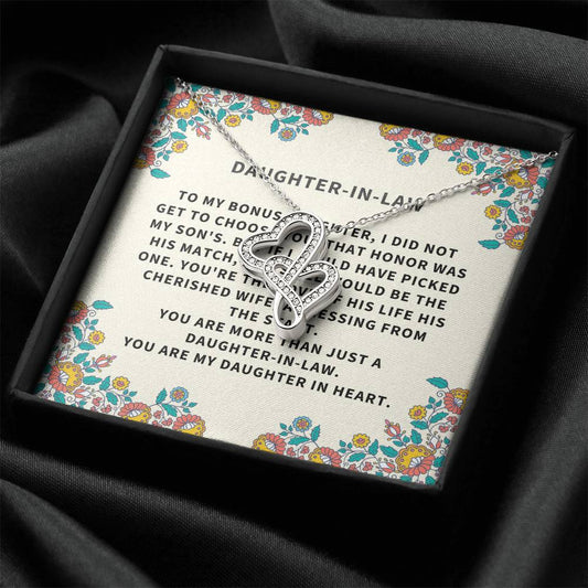To My Daughter-In-Law Joined Hearts Necklace Gift For Daughter In Law Welcoming Daughter In Law Into Family Daughter I Double Hearts Necklace