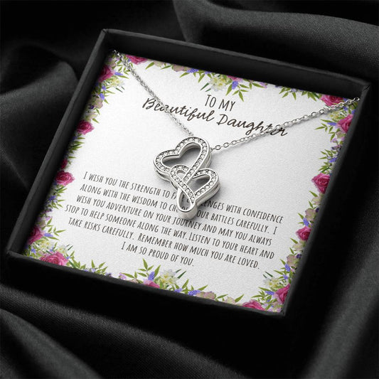 To My Beautiful Daughter I Wish You The Strength - Floral Double Hearts Necklace