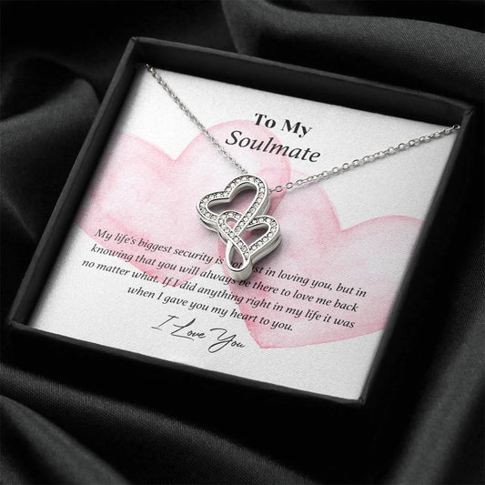 To My Soulmate - I Love You - Double Heart Necklace Double Hearts Necklace