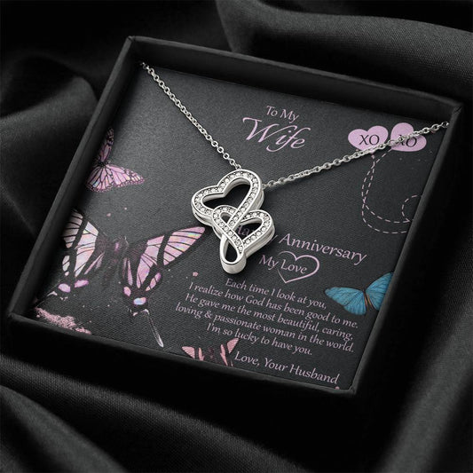 To My Beautiful Wife Necklace Anniversary Gift For Wife Birthday Gift For Wife Gift For Wife - The One Who Didn't Get Double Hearts Necklace
