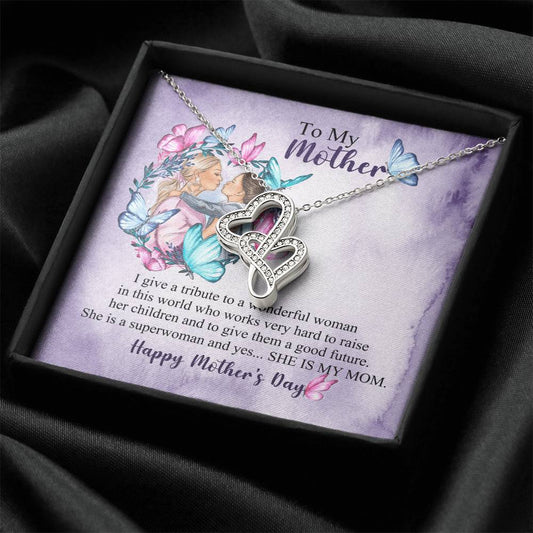 To My Mom - Happy Mother's Day 1 Double Hearts Necklace