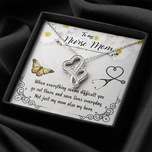 To My Nurse Mom - Not Just My Mom Also My Hero - Double Hearts Necklace