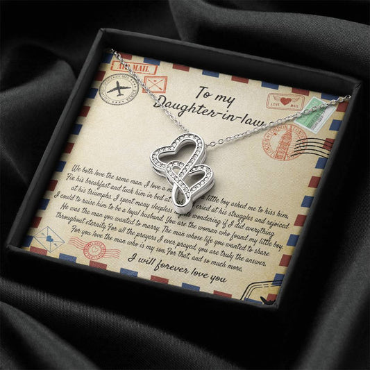 To My Daughter In Law Necklace - I Will Forever Love You - To My Daughter In Law Necklace From Mother In Law - We Both Double Hearts Necklace