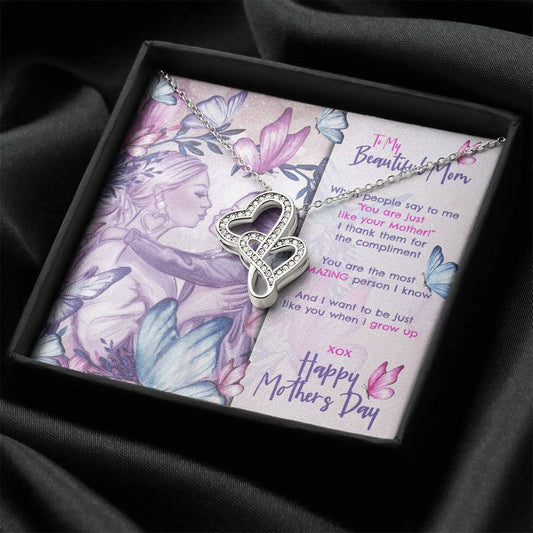 My Beautiful Mom Double Hearts Mothers Day Gift Necklace Double Hearts Necklace
