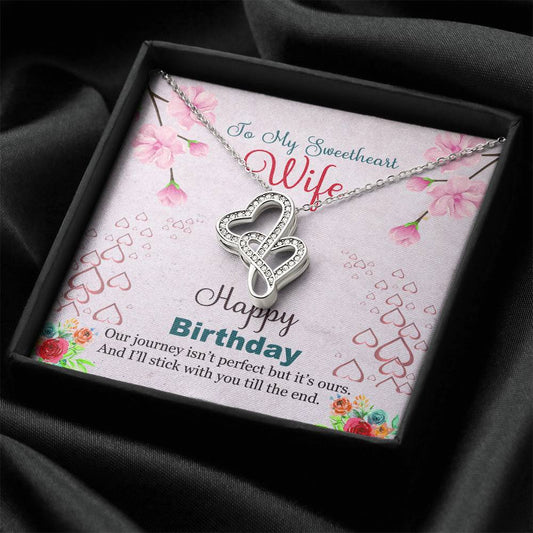 To My Sweetheart Wife Double Hearts Beautiful Necklace Gift For Wife. Husband Birthday Gift From Wife.Gift Double Hearts Necklace
