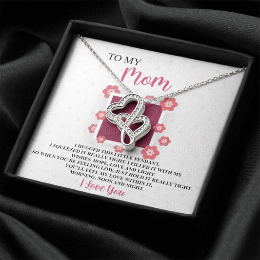 I Love My Mom Double Hearts Cz Necklace Valentines Day Birthday Heartfelt Keepsake Gift Double Hearts Necklace