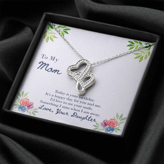 Double Heart Necklace With Love To See A Smile On Your Birthday Message Card Gift For Mother Double Hearts Necklace