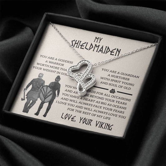 To My Shieldmaiden Gift For Wife Necklace Shieldmaiden Necklace Viking Double Heart Necklace For Her - To My Shieldmai Double Hearts Necklace