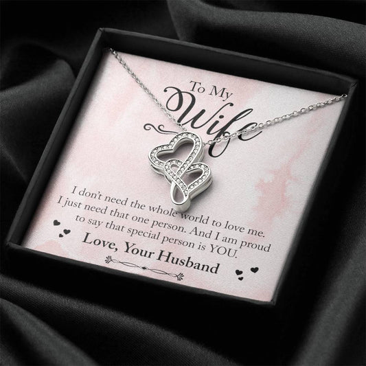 Dear Wife Happy Anniversary - Double Hearts - Love Your Husband - Wife Christmas Gift From Husband Wife Christmas Gift 1 Double Hearts Necklace