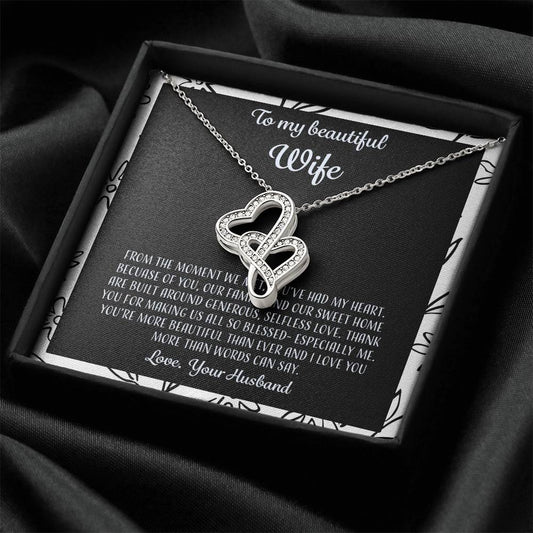 To My Beautiful Wife From The Moment We Met - Floral Double Hearts Necklace