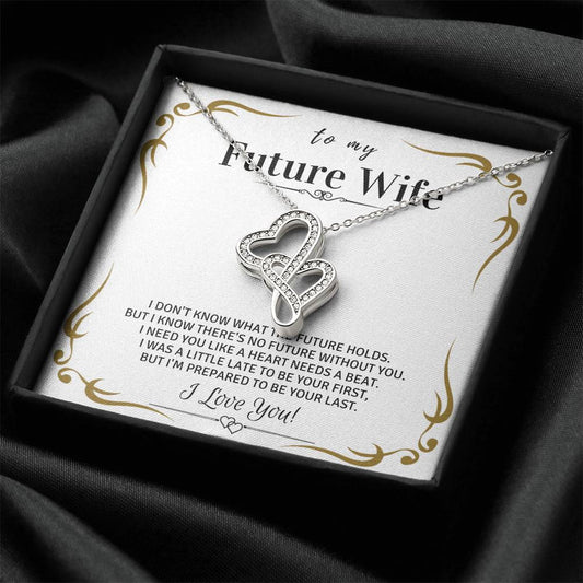 To My Fiancee Message Card Jewelry - I Love You - Future Wife Necklace - Soon To Be Married - Valentine's Day Gift - E Double Hearts Necklace