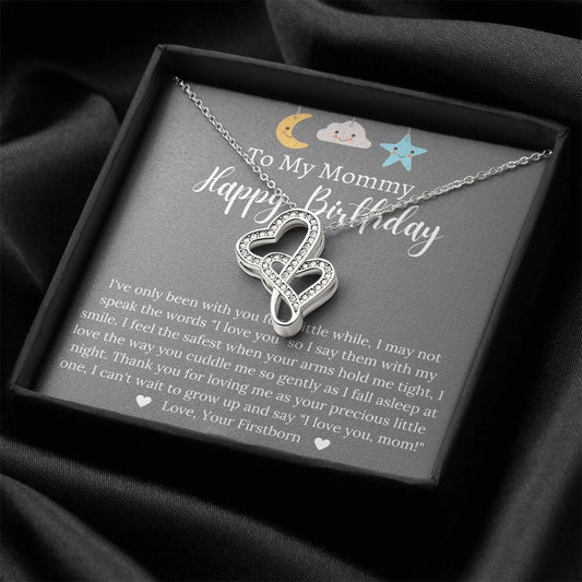 To My Mommy Happy Birthday - - Love Your Firstborn Double Hearts Necklace