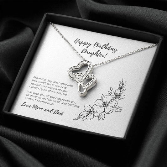 Happy Birthday Daughter Double Hearts Necklace