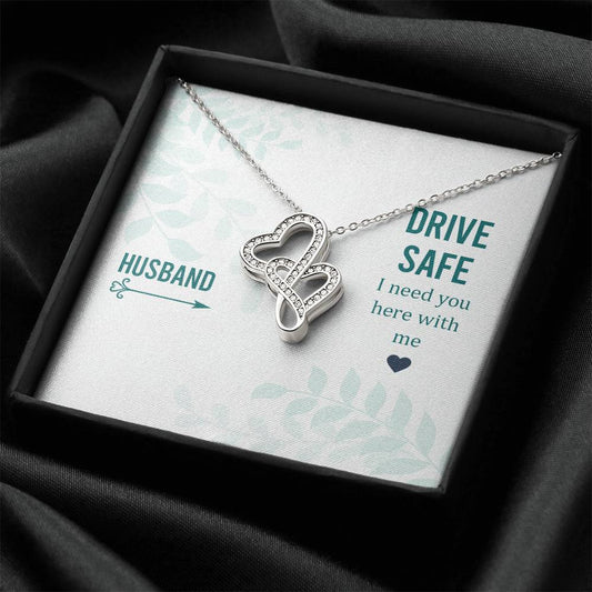 Husband - Drive Safe I Need You Here With Me - Double Hearts Necklace