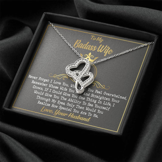 To My Badass Wife Birthday Gift Wife Anniversary Necklace Crystal Heart Golden Crown Necklace Gift - Valentines Day Gi Double Hearts Necklace
