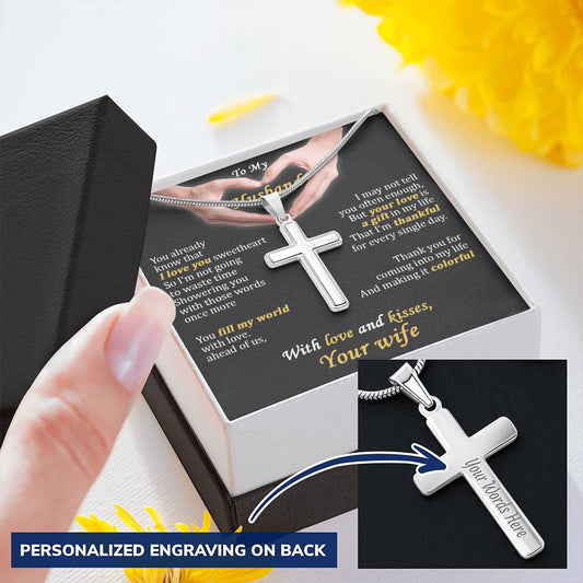 For Husband - Making My Life Colorful - Cross Customize Engraved Cross Necklace