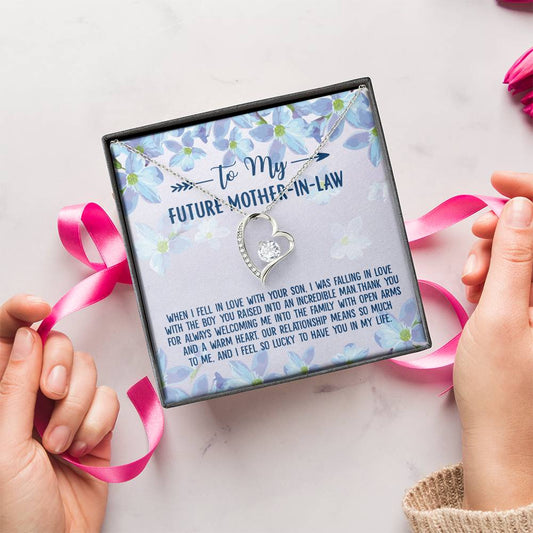 Love Knot Pendant Necklace To My Future Mother-In-Law The Boy You Raised Bonus Mom Gift Future Mother-In-Law Necklace Future Stepmom Forever Love Necklace