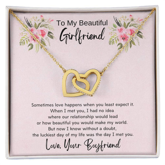 To My Beautiful Girlfriend Interlocking Hearts Necklace