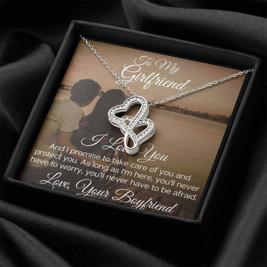 To My Girlfriend - Double Heart Double Hearts Necklace