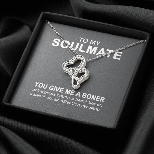 To My Soulmate You Give Me A Boner Necklace - You Give Me A Boner - To My Soulmate Necklace Gift For Wife Girlfriend V Double Hearts Necklace