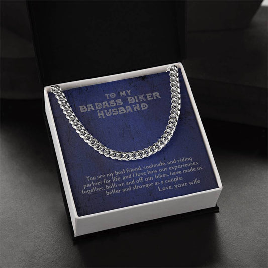 To My Badass Biker Husband From Wife - Cuban Link Chain Necklace For Biker Motorcycle Couple Gift For Him